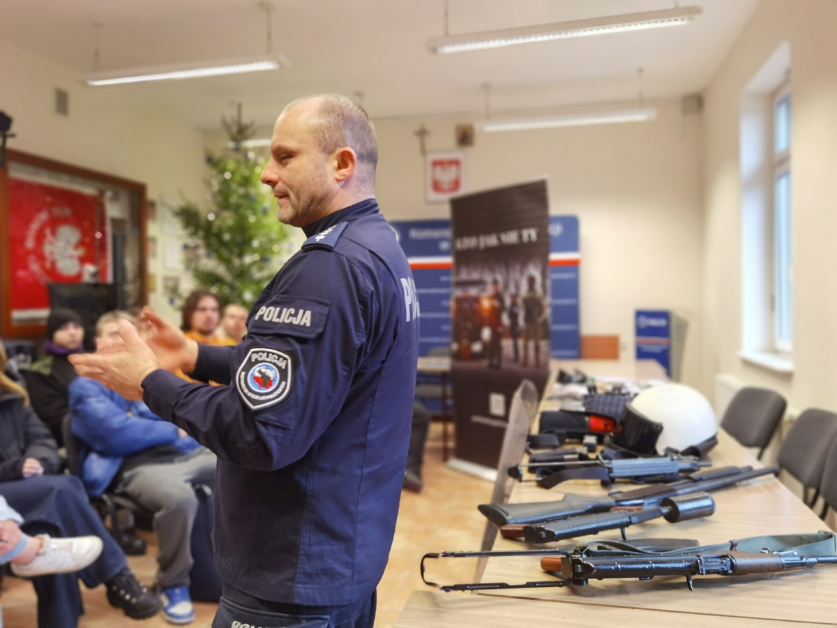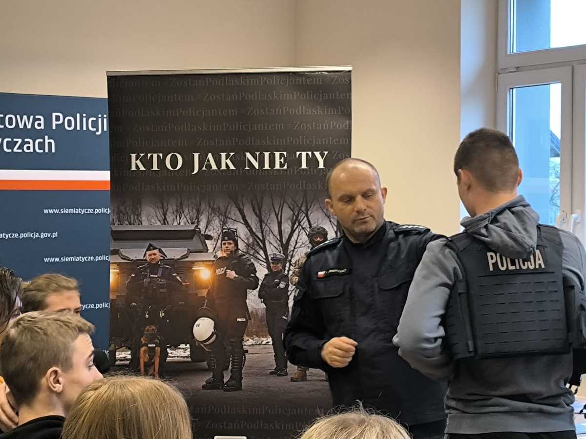 Komendę Powiatową Policji w Siemiatyczach odwiedzili dziś młodzież Zespołu Szkół w Czartajewie. W ramach dnia otwartego, około 20 młodych ludzi mogło zapoznać się z pracą policjantów różnych wydziałów, m.in. kryminalnego, ruchu drogowego czy też prewencji. Podczas spotkania szczegółowo omówione zostały procedury doboru do służby w Policji. Spotkanie było też świetną okazją do tego, aby mundurowi podzielili się z młodymi ludźmi swoimi doświadczeniami zawodowymi. Zainteresowani mogli również zobaczyć z bliska sprzęt będący na wyposażeniu Policji.